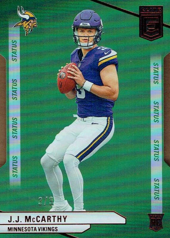 JJ McCarthy 2024 Elite #105 Status Die-Cut /9 Rookie RAW Price Guide