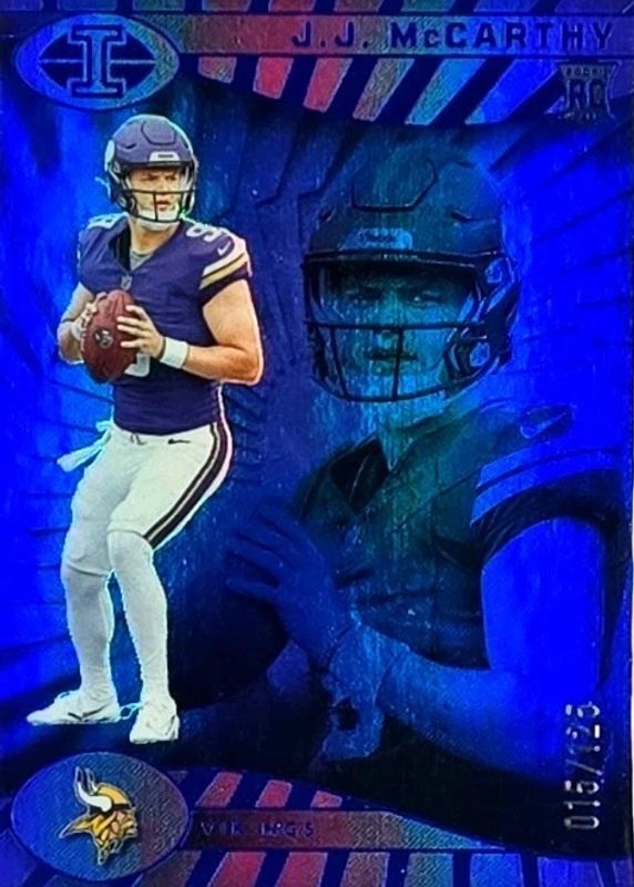 2024 Panini Illusions J.J. McCarthy #100 Blue Trophy Collection 5/125 - Vikings