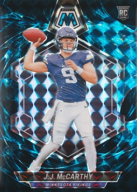 This card is 1 of 173 JJ McCarthy's card variations in the 2024 Mosaic set being tracked by Sports Card Investor, including Base, NFL Debut, Green, Mosaic, and NFL Debut - Green.