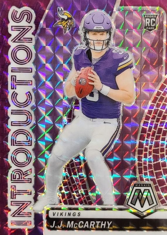 JJ McCarthy 2024 Mosaic #5 Introductions - Purple /49 Rookie RAW Price Guide