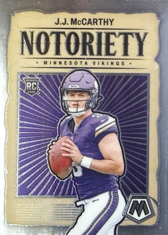 JJ MCCARTHY RC 2024 Panini Mosaic NOTORIETY INSERT #21 MINNESOTA VIKINGS ROOKIE