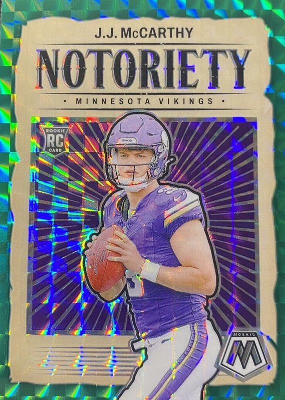 J.J. MCCARTHY 2024 MOSAIC NOTORIETY ROOKIE GREEN MOSAIC VIKINGS RC Q3713