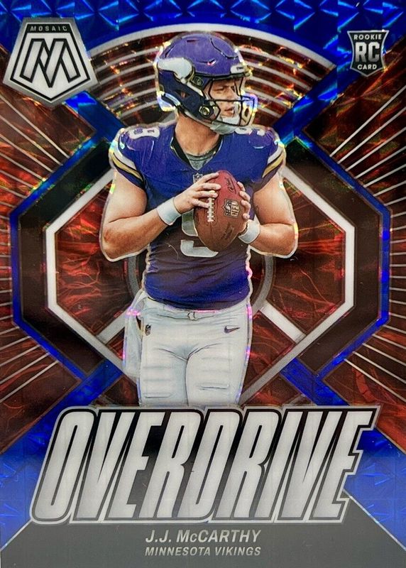 2024 Panini Mosaic J.J. McCarthy Overdrive Blue /99 #3 RC Minnesota Vikings JT4