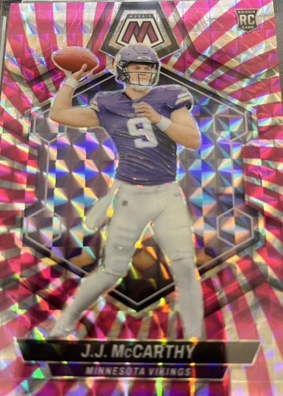 JJ McCarthy 2024 Mosaic #310 Pink Swirl /13 Rookie RAW Price Guide