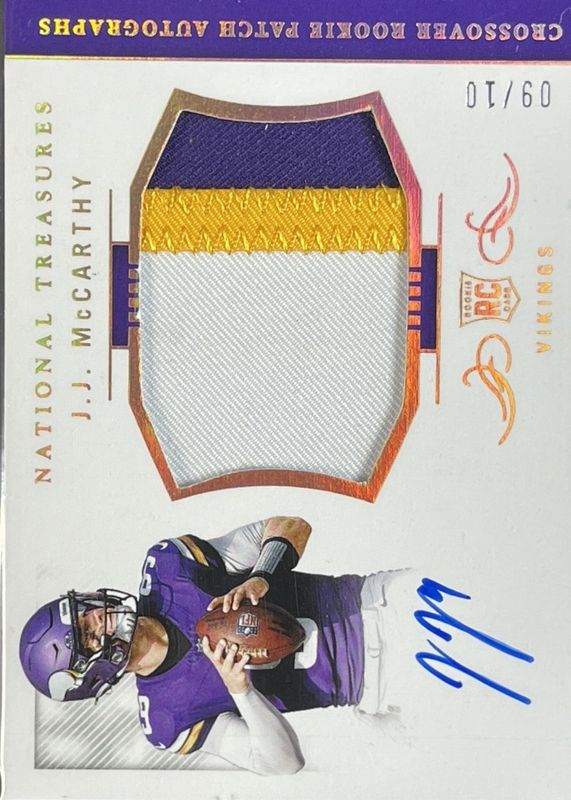JJ McCarthy 2024 National Treasures #CRPA-JMY Crossover Rookie Patch Autographs - Holo Gold /10 RAW Price Guide