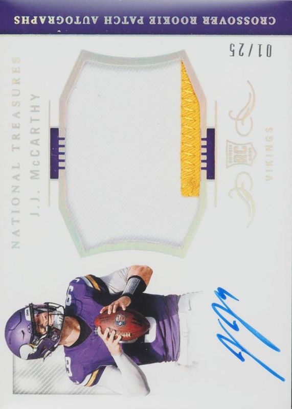 JJ McCarthy 2024 National Treasures #CRPA-JMY Crossover Rookie Patch Autographs - Holo Silver /25 RAW Price Guide