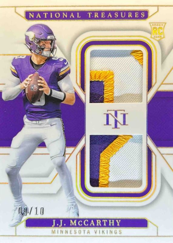 JJ McCarthy 2024 National Treasures #RDM-JMY Rookie Dual Materials - Holo Gold /10 RAW Price Guide