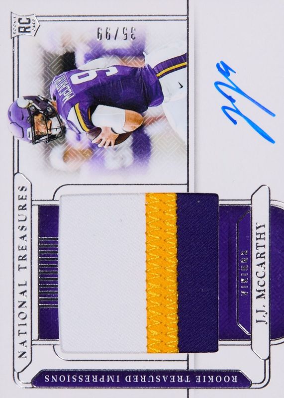 2024 national treasures JJ McCarthy rookie treasured impressions RPA /99