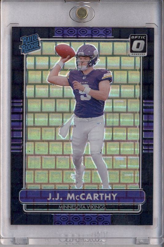 The JJ McCarthy 2024 Optic #10 2014 Retro Series - Black Pandora /25 Rookie card in Raw condition has not changed in price in the last 30 days and was last sold for $150.00 .