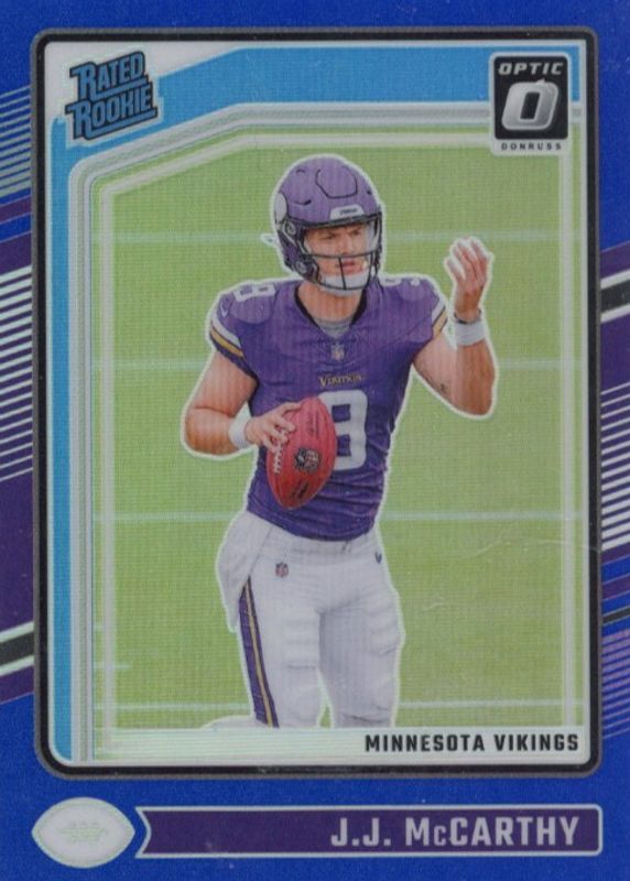 2024 Panini Donruss Optic - Rated Rookie J.J. McCarthy #235 Blue Prizm /199 (RC)
