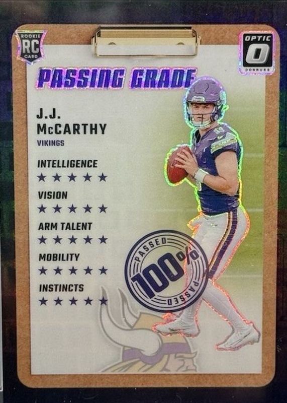 JJ McCarthy 2024 Optic #6 Passing Grade - Black Pandora /25 Rookie RAW Price Guide