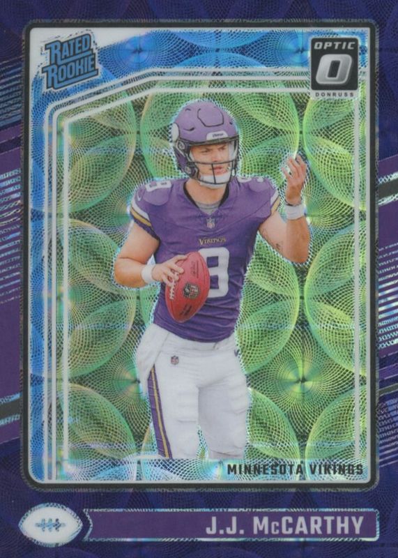 J.J. MCCARTHY PURPLE SCOPE PRIZM 2024 Donruss Optic Rated Rookie 235 RC Vikings