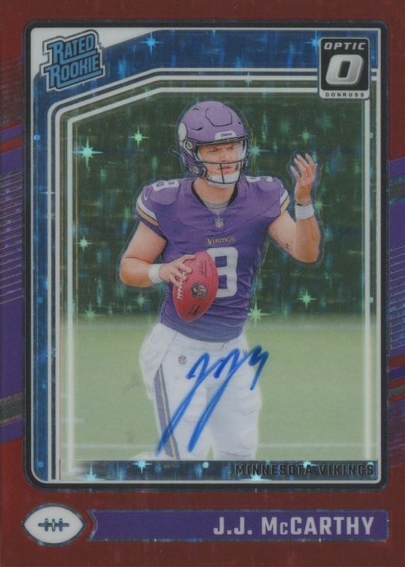 JJ McCarthy 2024 Optic #235 Rated Rookie Autographs - Red Stars /8 RAW Price Guide