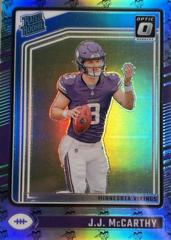 The JJ McCarthy 2024 Optic #235 Team Logo /32 Rookie card in Raw condition has not changed in price in the last 30 days and was last sold for $250.00 .