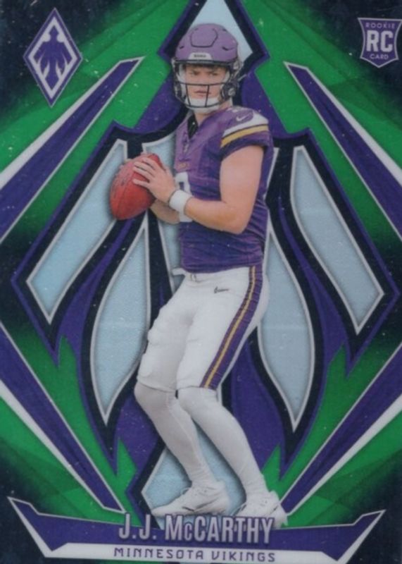 2024 Panini Phoenix J.J. McCarthy Green Fade /199 Rookie (RC) #185 Vikings