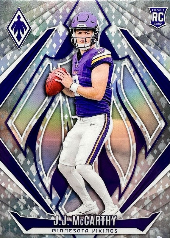 This card is 1 of 97 JJ McCarthy's card variations in the 2024 Phoenix set being tracked by Sports Card Investor, including Base, Hyper, Ice, International, and Lazer.