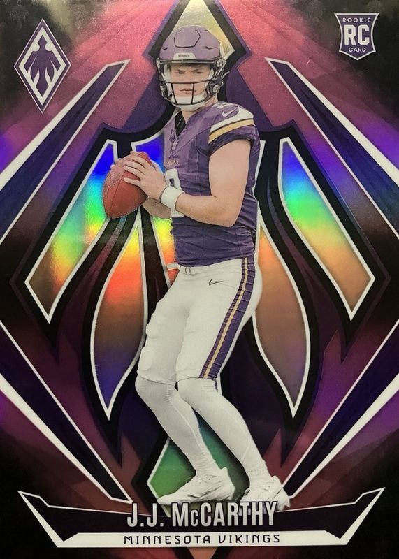 This card is 1 of 97 JJ McCarthy's card variations in the 2024 Phoenix set being tracked by Sports Card Investor, including Base, Hyper, Ice, International, and Lazer.