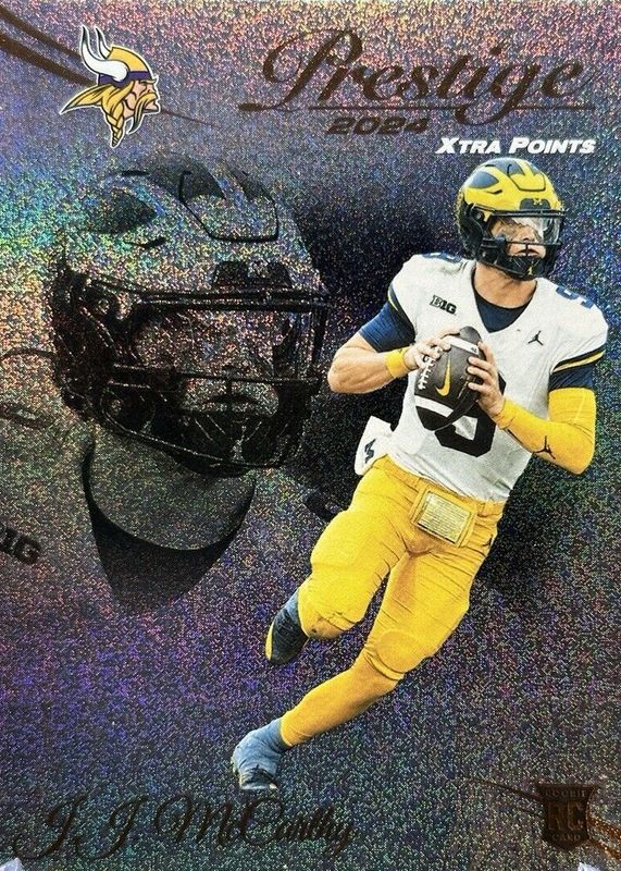 This card is 1 of 31 JJ McCarthy's card variations in the 2024 Prestige set being tracked by Sports Card Investor, including Base, Diamond Xtra Points, Galaxy Xtra Points, Hyper Xtra Points, and Sunburst Xtra Points.