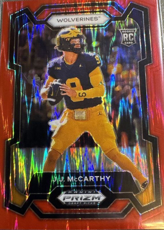 Recent Sales of JJ McCarthy 2024 Prizm Draft Picks #132 Red Flash /49 Rookie Raw