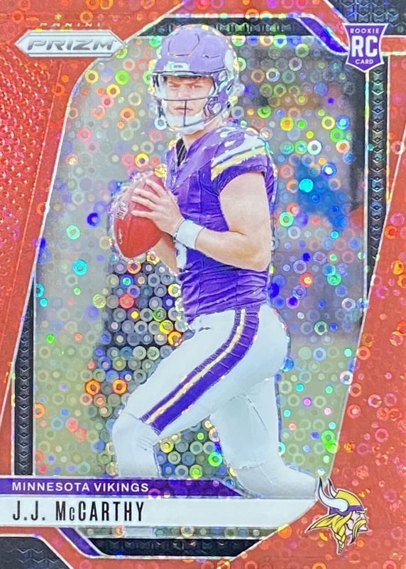 2024 Panini Prizm No Huddle #/75 Red Disco JJ McCarthy Rookie RC #400 Vikings