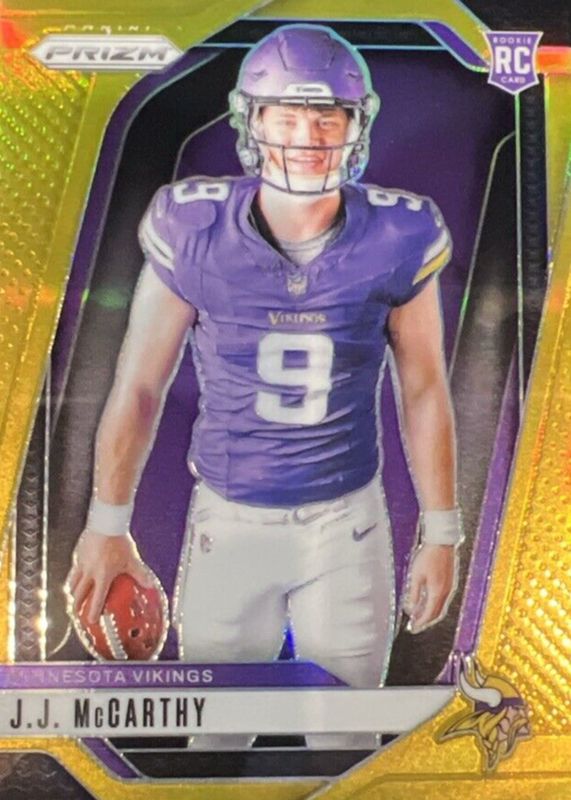 Auctions Ending Soon for JJ McCarthy 2024 Prizm #13 Rookie Variation - Gold /10 PSA 7