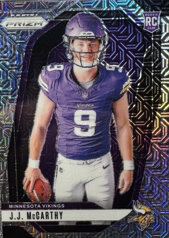 The JJ McCarthy 2024 Prizm #13 Rookie Variation - Mojo /25 card in Raw condition has not changed in price in the last 30 days and was last sold for $615.00 .