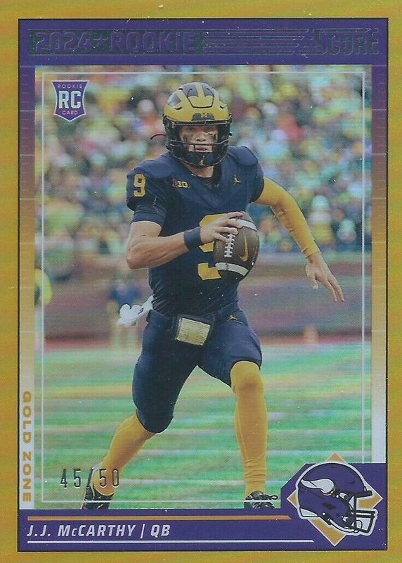 2024 Panini Score Gold Zone Rookie J.J. McCarthy #304 RC 31/50 Minnesota Vikings