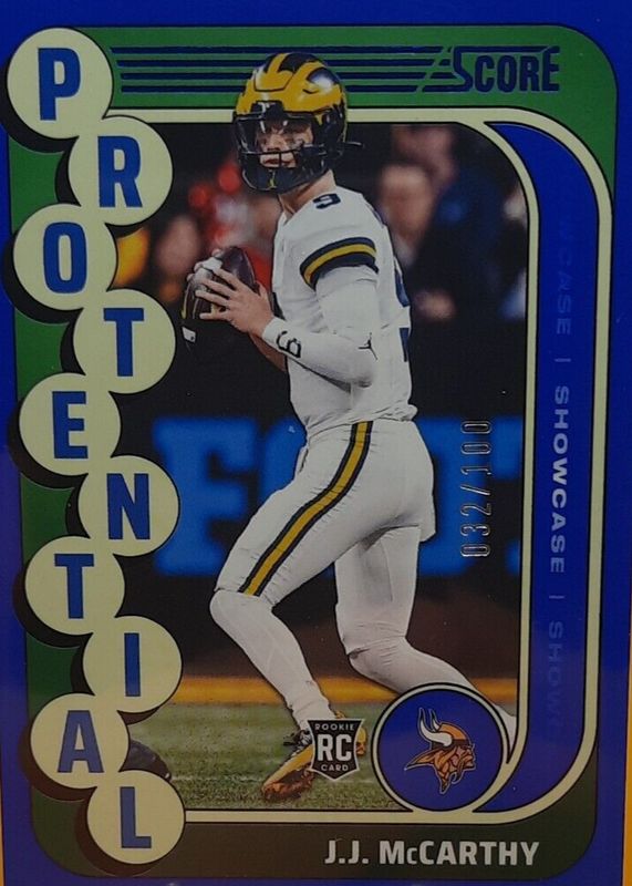 JJ McCarthy 2024 Score #10 Protential - Showcase /100 Rookie RAW Price Guide