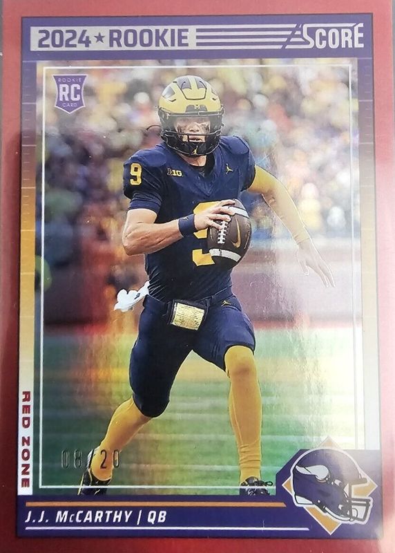 JJ McCarthy 2024 Score #304 Red Zone /20 Rookie RAW Price Guide