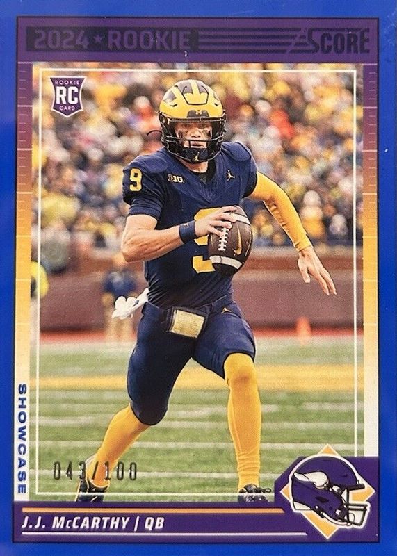 JJ McCarthy 2024 Score #304 Showcase /100 Rookie RAW Price Guide