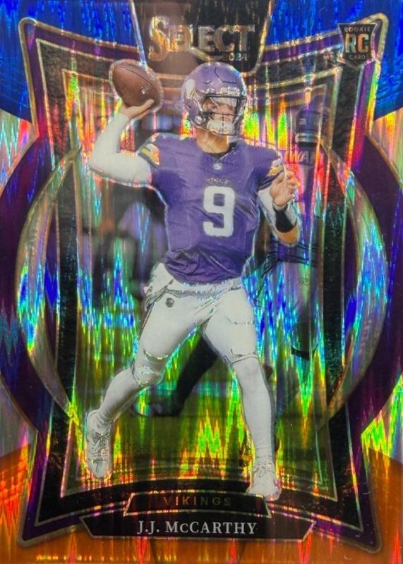 JJ McCarthy 2024 Select #24 Concourse Blue & Orange Shock /35 Rookie RAW Price Guide