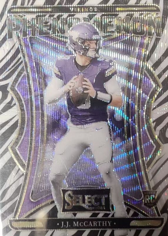 2024 Panini Select #6 JJ McCarthy Vikings Phenomenon Zebra Shock Rookie RC