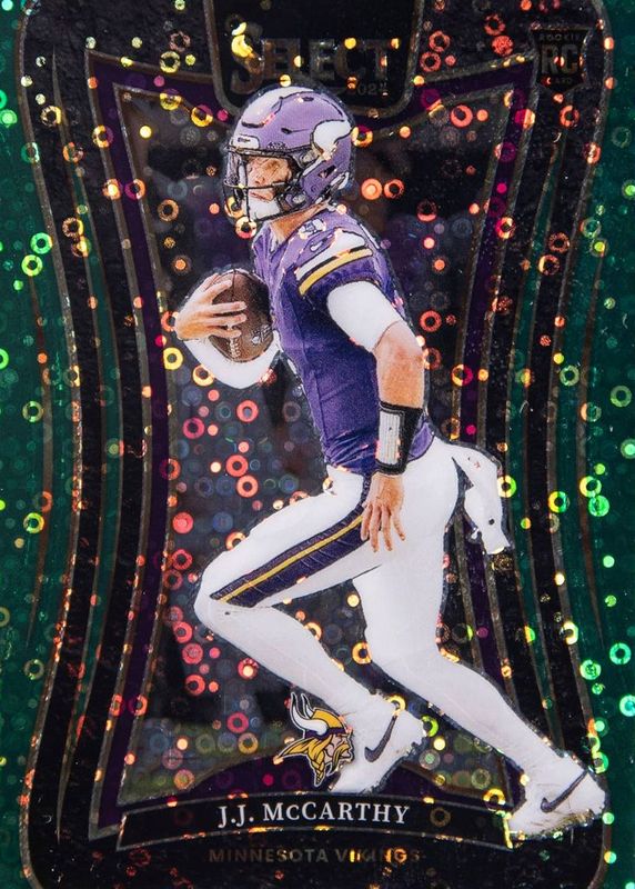 The JJ McCarthy 2024 Select #342 Suite Level Green Disco /5 Rookie card in Raw condition has not changed in price in the last 30 days and was last sold for $425.00 .
