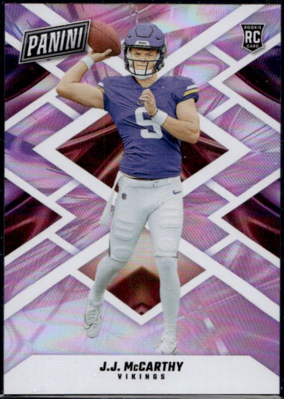 The JJ McCarthy 2024 Panini Black Friday #RC13 Holo /150 Rookie card is 1 of 16 JJ McCarthy's card variations in the 2024 Panini Black Friday set being tracked by Sports Card Investor, including Base, Red /125, Blue /50, Autographs /25, and Purple /25.