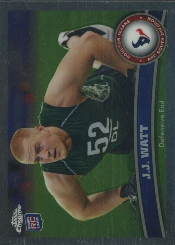 The JJ Watt 2011 Topps Chrome #104 Base Rookie card in Raw condition has moved down -$2.19 (-54.8%) in the last 30 days and was last sold for $1.80 .