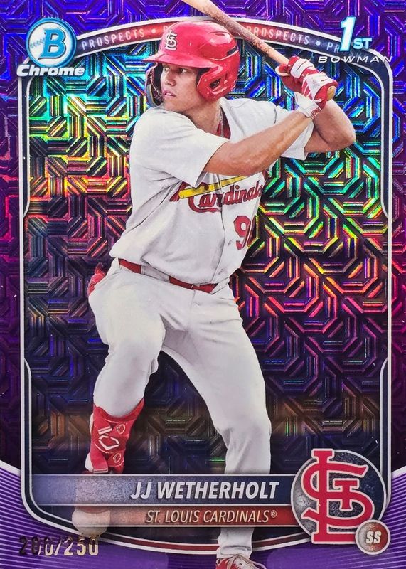 JJ WETHERHOLT 2025 Bowman Chrome 1st Purple Refractor Mojo /250 Cardinals RC