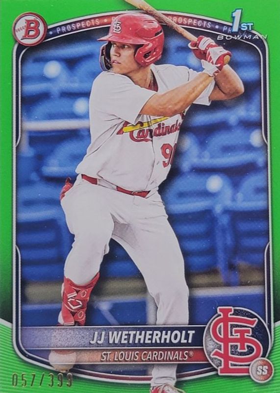 2025 Bowman 1st Prospects JJ Wetherholt Green Paper /399 #BP-22 - Cardinals