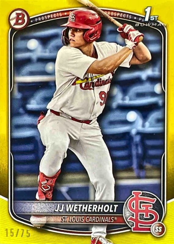 2025 1st Bowman JJ Wetherholt #BP-22 Yellow /75 Cardinals SP
