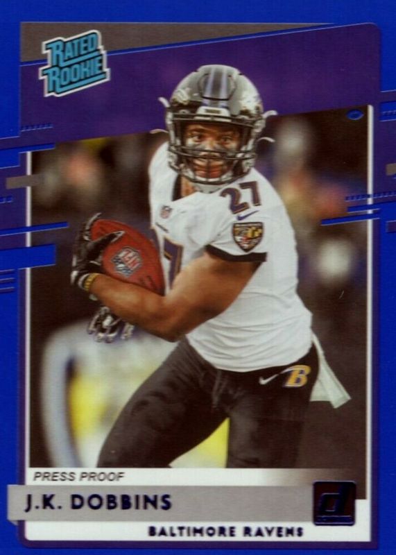 2020 Donruss Rated Rookie Press Proof Blue #311 J.K. Dobbins Baltimore Ravens
