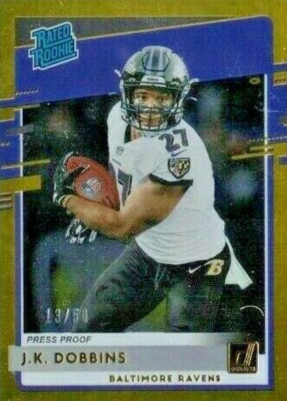 2020 Panini Donruss - Rated Rookie Press Proof Gold /50 #311 J.K. Dobbins (RC)