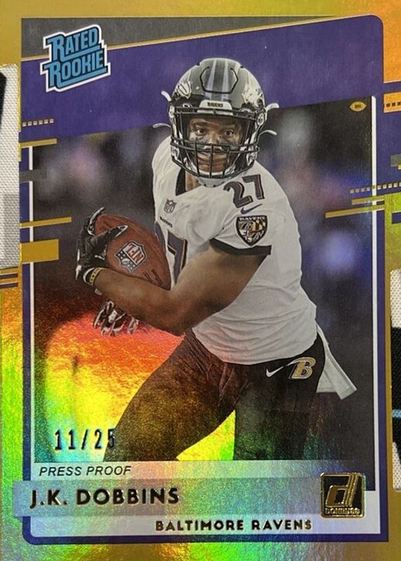 Recent Sales of JK Dobbins 2020 Donruss #311 Press Proof Gold Die-Cut /25 Rookie Raw