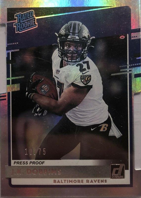 Auctions Ending Soon for JK Dobbins 2020 Donruss #311 Press Proof Silver Die-Cut /75 Rookie RAW