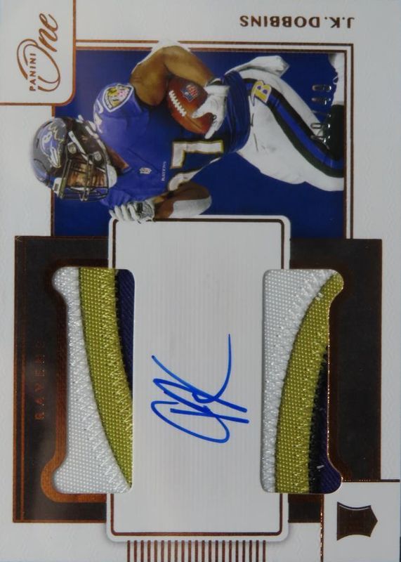 2020 Panini One JK Dobbins RPA Bronze Rookie Dual Patch Auto RC #14/49 Ravens