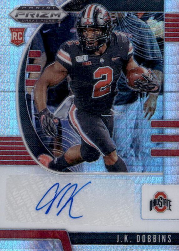 The JK Dobbins 2020 Prizm Draft Picks #114 Autographs - Hyper (/75) Rookie card in Raw condition has not changed in price in the last 30 days and was last sold for $20.00 .