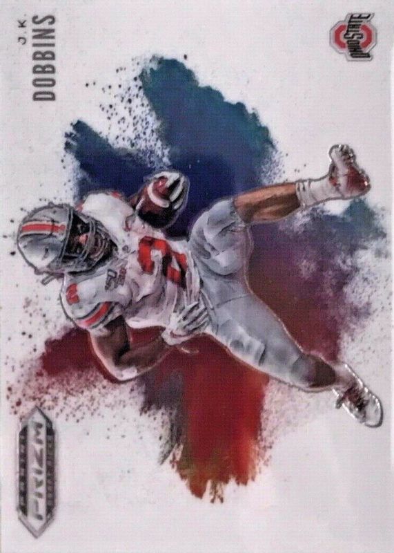 This card is 1 of 24 JK Dobbins' card variations in the 2020 Prizm Draft Picks set being tracked by Sports Card Investor, including Silver, Autographs - Blue, Autographs - Green, Autographs - Hyper (/75), and Autographs - Neon Green (/25).