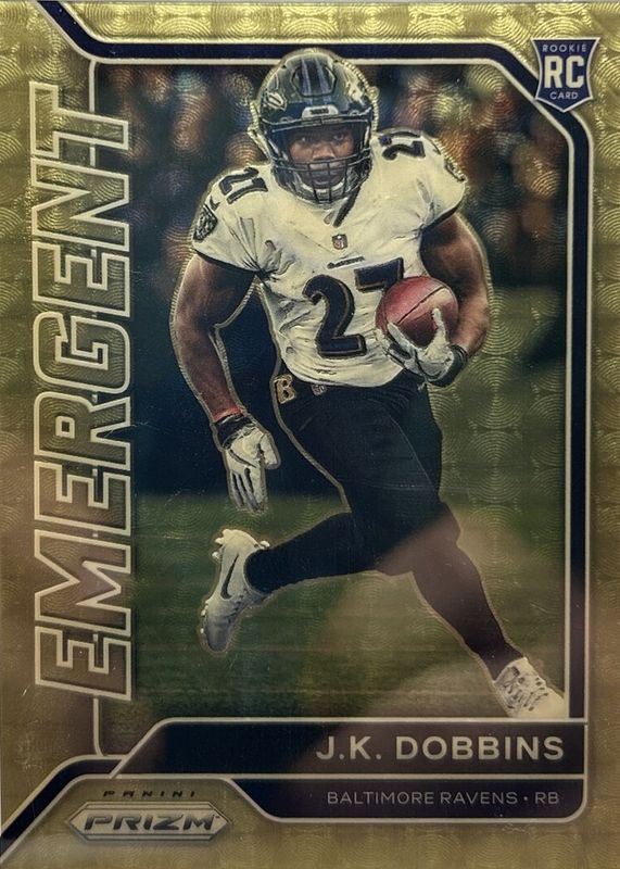 JK Dobbins 2020 Prizm #5 Emergent - Gold Vinyl /5 Rookie RAW Price Guide