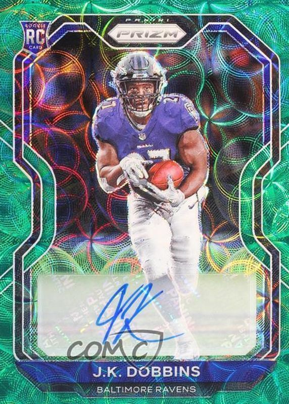 Auctions Ending Soon for JK Dobbins 2020 Prizm #379 Rookie Autographs - Green Scope /75 RAW