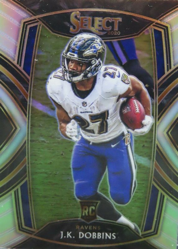 [4] J.K. DOBBINS 2020 SELECT CLUB LEVEL ROOKIE SILVER PRIZM RAVENS RC Q3933