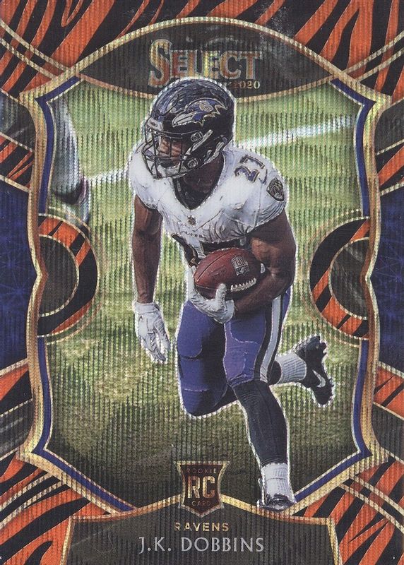 This card is 1 of 171 JK Dobbins' card variations in the 2020 Select set being tracked by Sports Card Investor, including Club Level, Concourse, Field Level, Premier Level, and Club Level Blue Die-Cut.