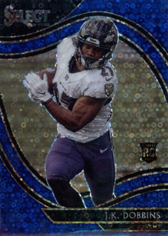 This card is 1 of 171 JK Dobbins' card variations in the 2020 Select set being tracked by Sports Card Investor, including Club Level, Concourse, Field Level, Premier Level, and Club Level Blue Die-Cut.